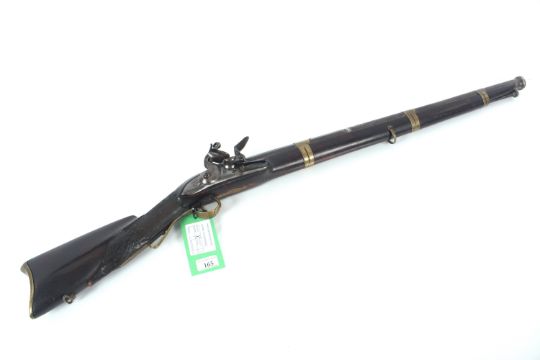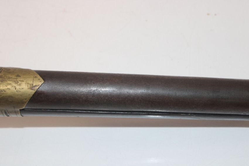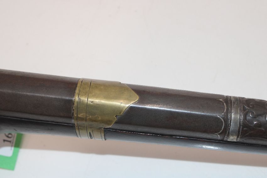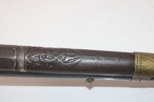A flintlock arm of Eastern origin, European style lock, heavy "Cannon" barrel and carved stock, A very unusual example