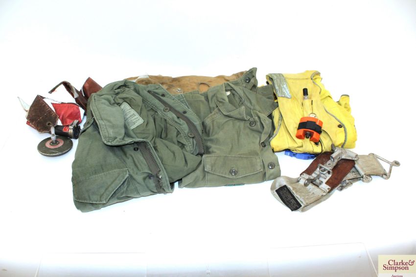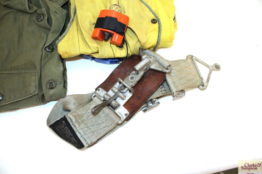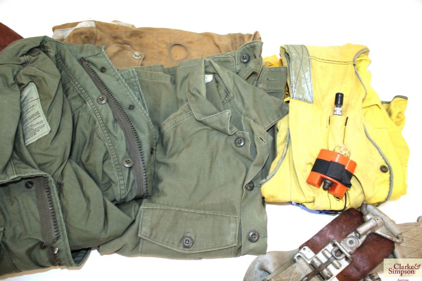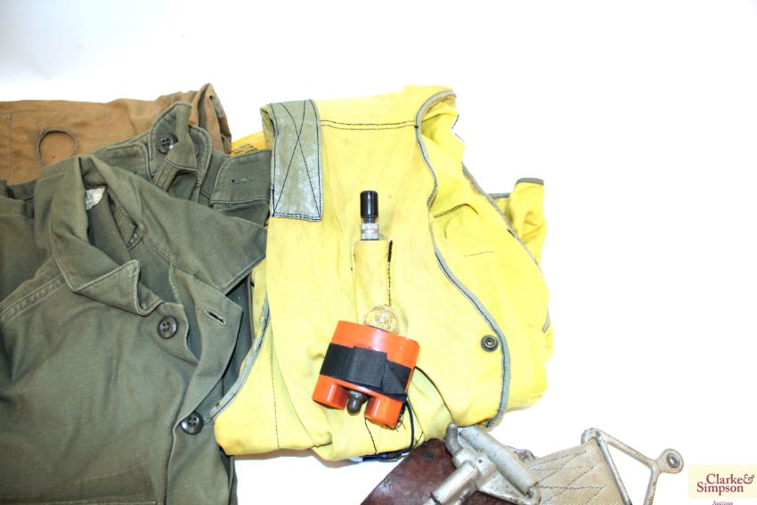 A mixed lot including U.S.A. post war uniform items and a Life Preserver vest type, US Navy mark I