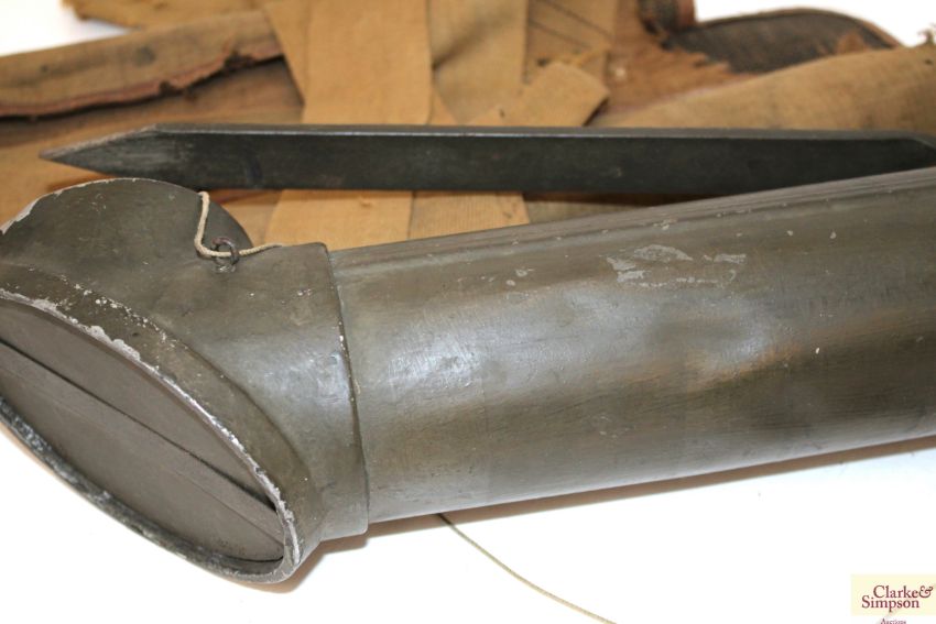 A WWI trench periscope, by Adams No.30 circa 1917. Compete with lens covers and spike for attaching to trench wall. This rare example also has it's original canvas case, that is AF