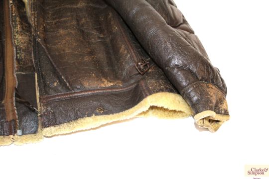 An "Aero Leather" WWII era B3 flying jacket, with period repair and post war work, but overall a good honest example
