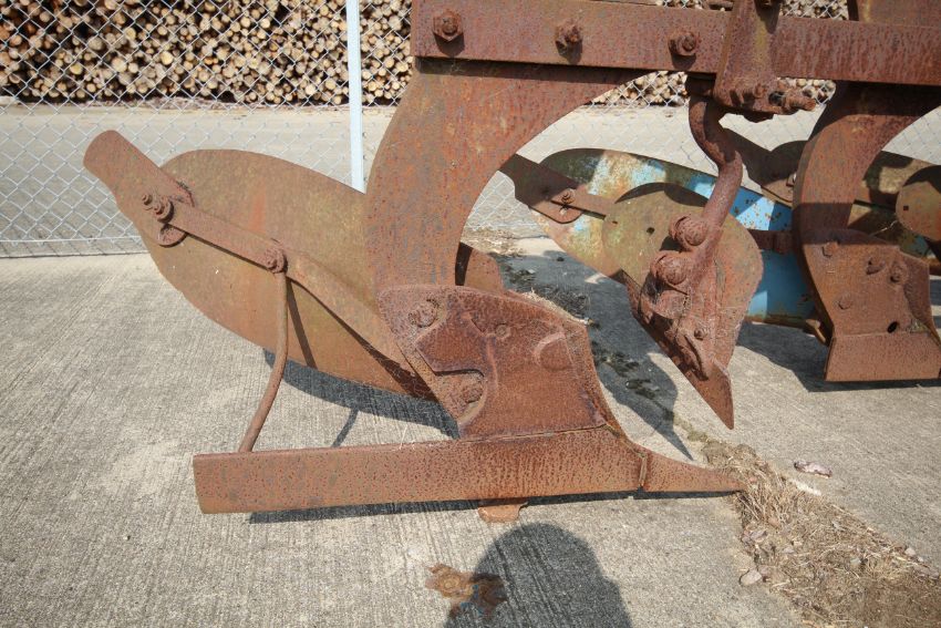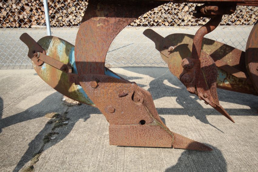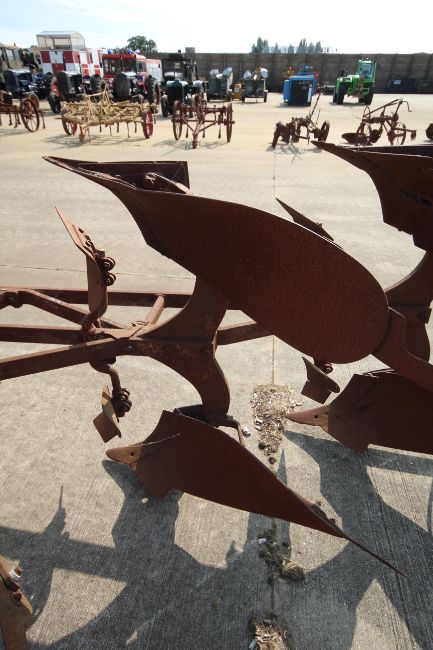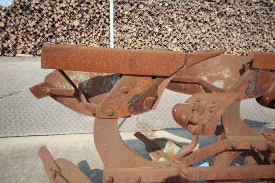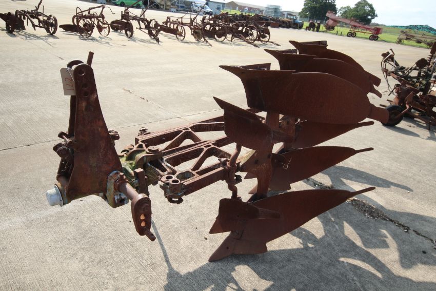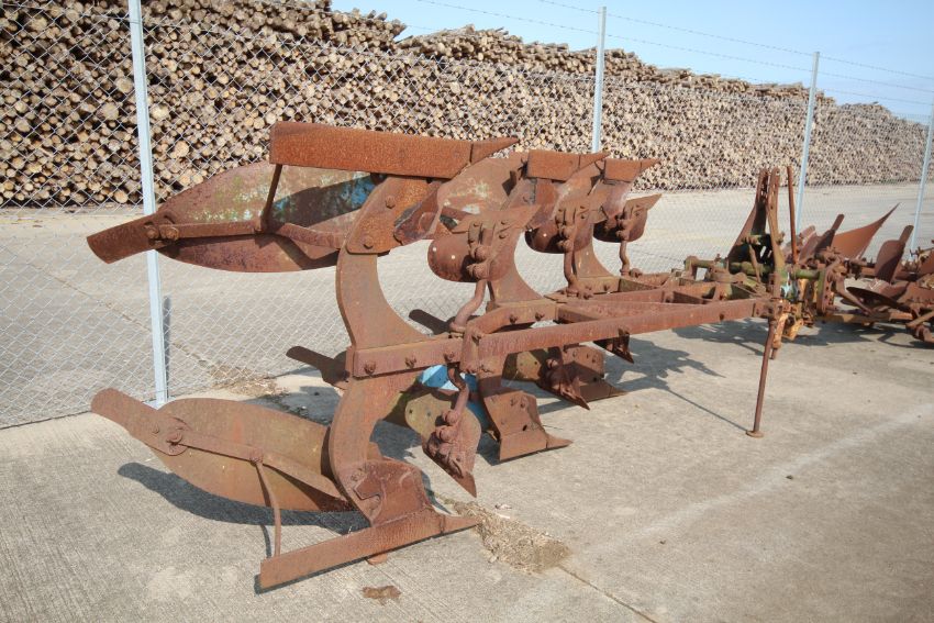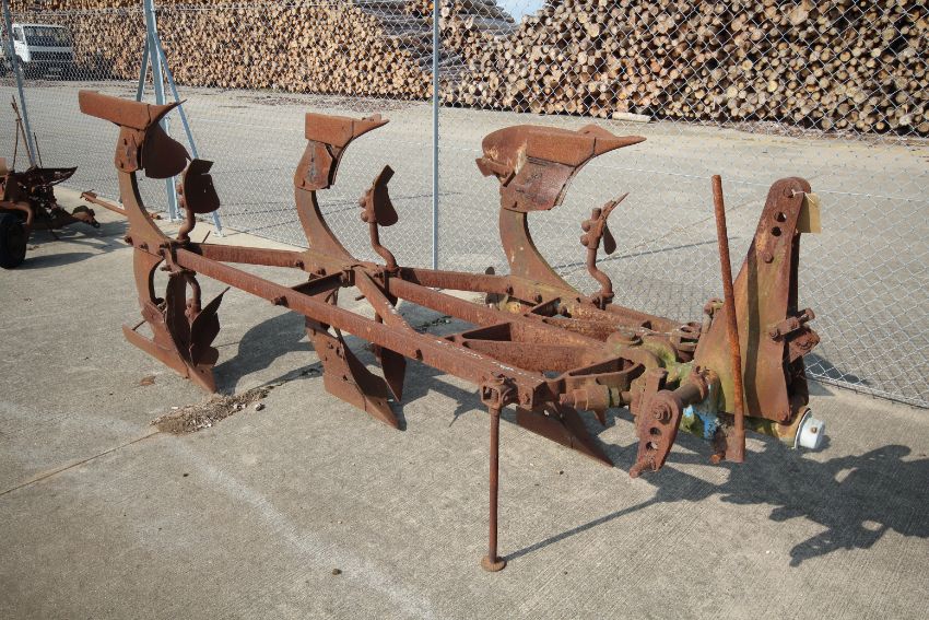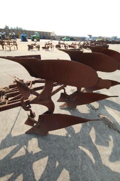 Ransomes TS83 three furrow reversible plough. With skimmers.