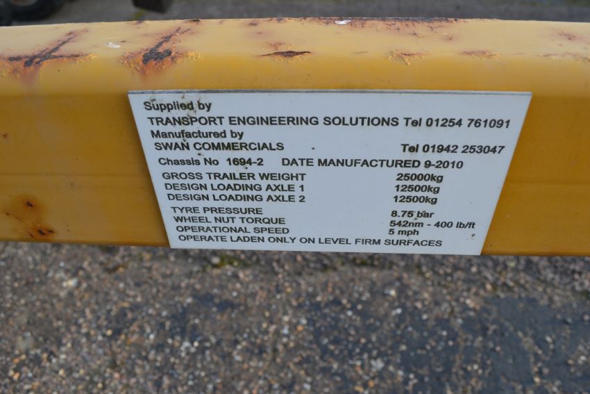 Swan Commercials 8-wheel 22T 20ft container moving trailer. 2010. With twist locks. SUBJECT TO VAT.