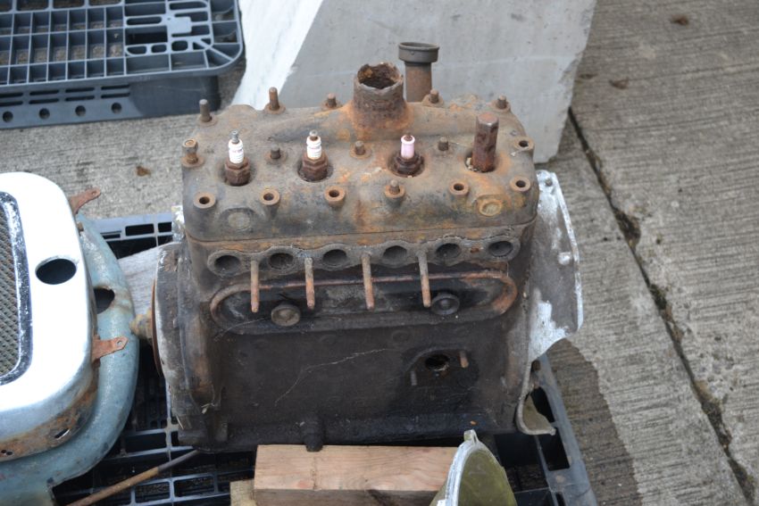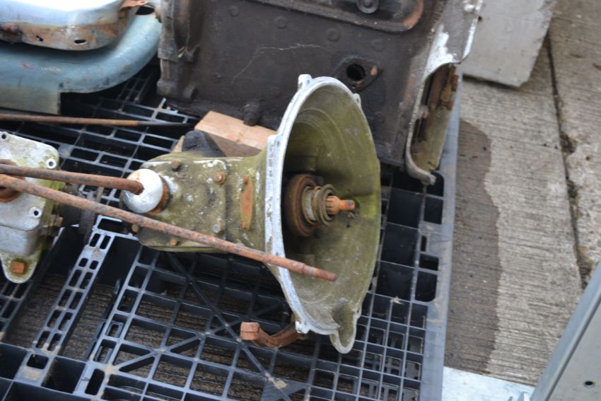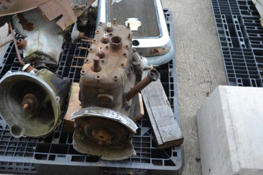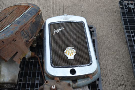Various Austin car spares to include engine, gearboxes, radiators etc.