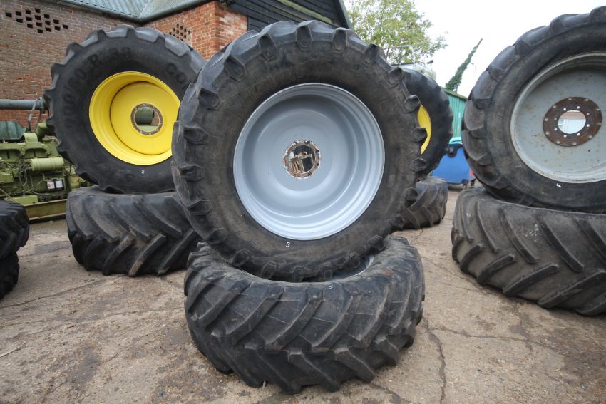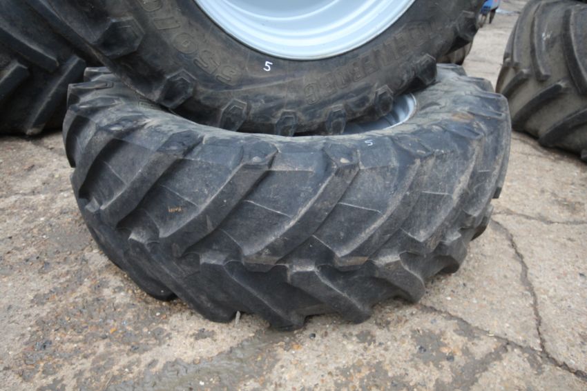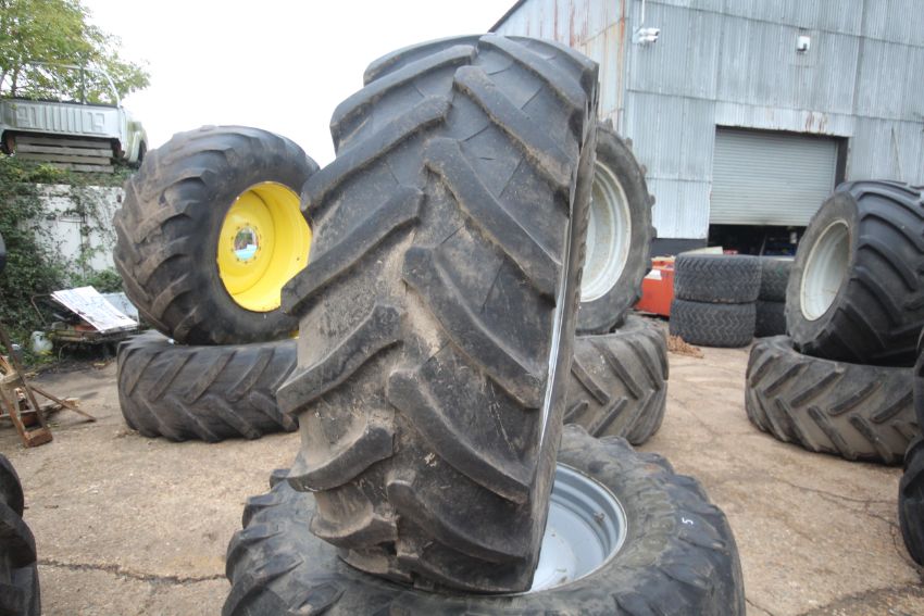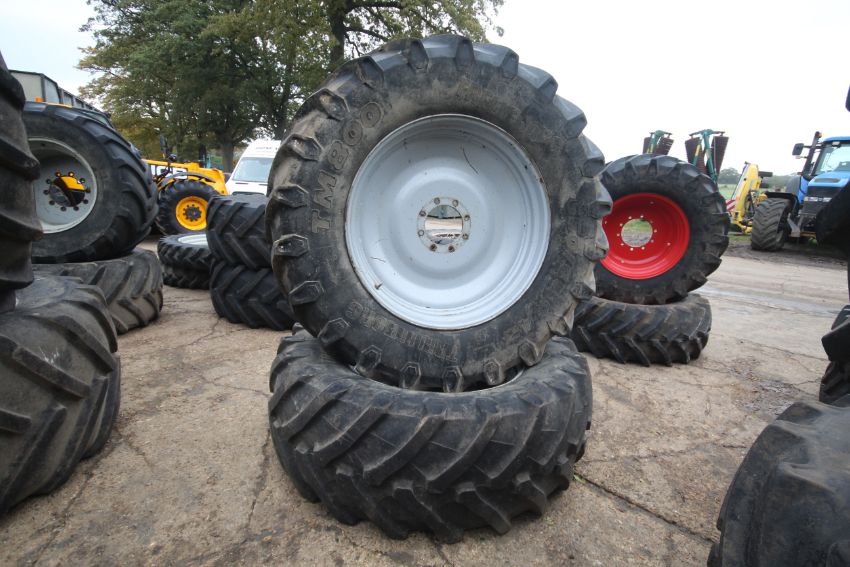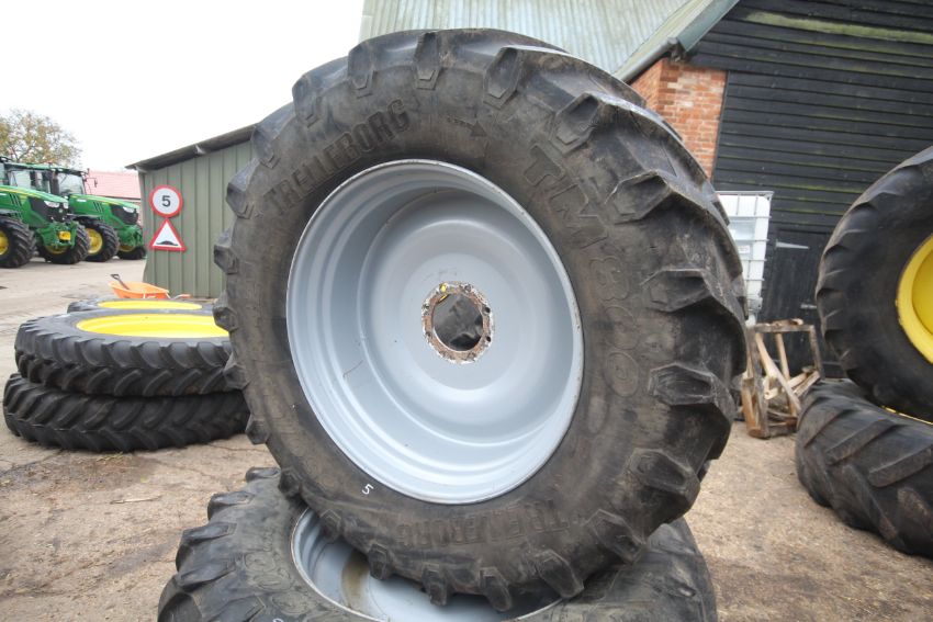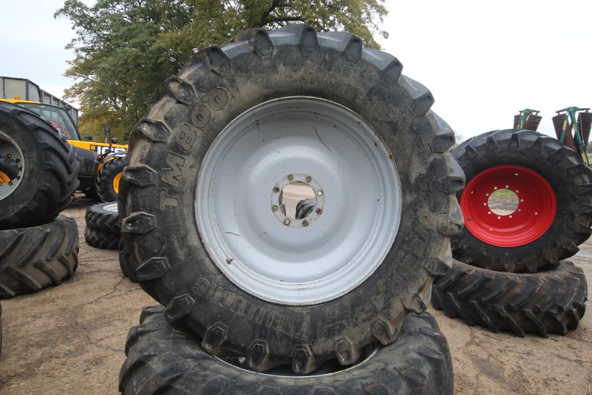 Pair of Trelleborg TM800 8-stud 650/65R42 Massey Ferguson wheels and tyres. V