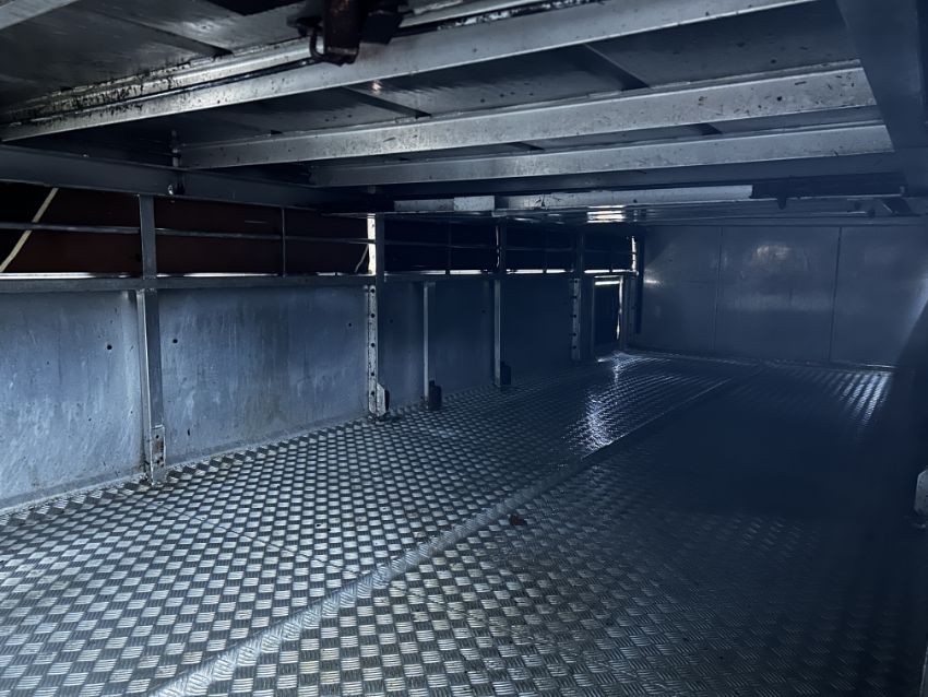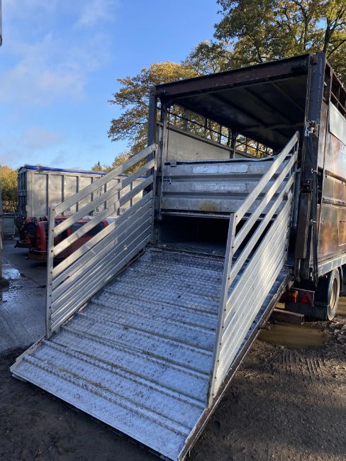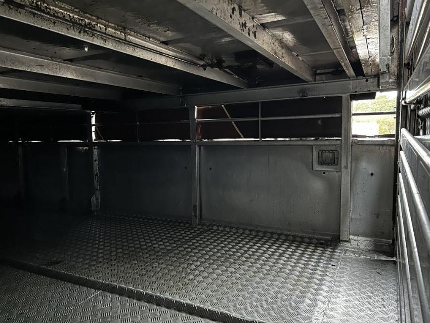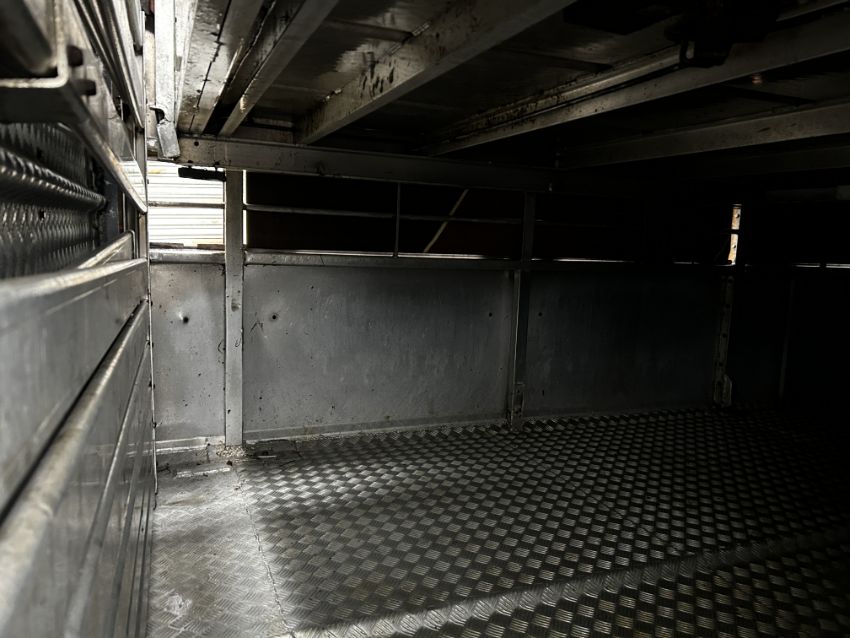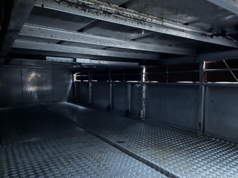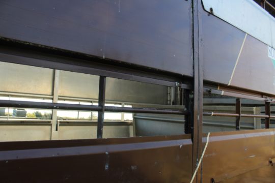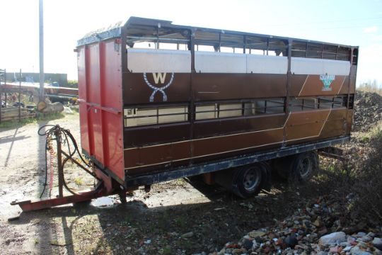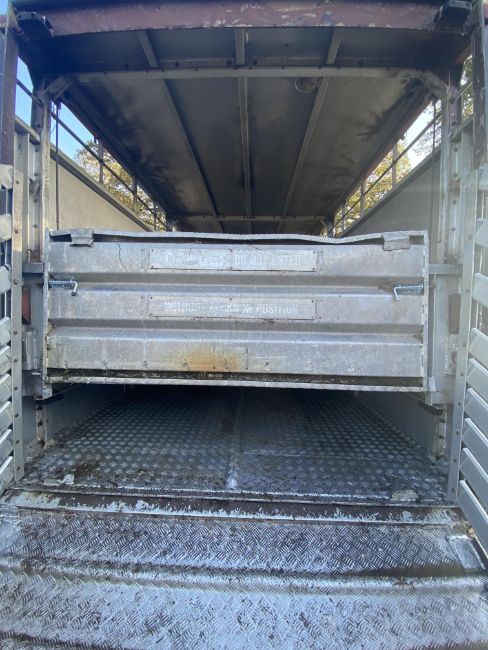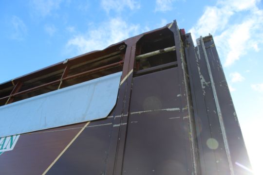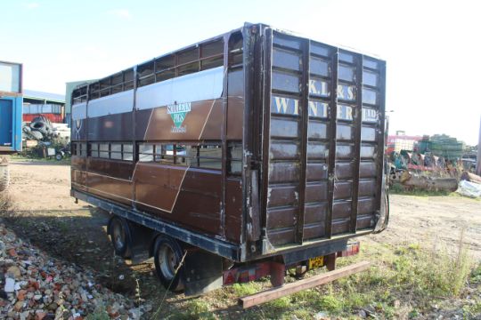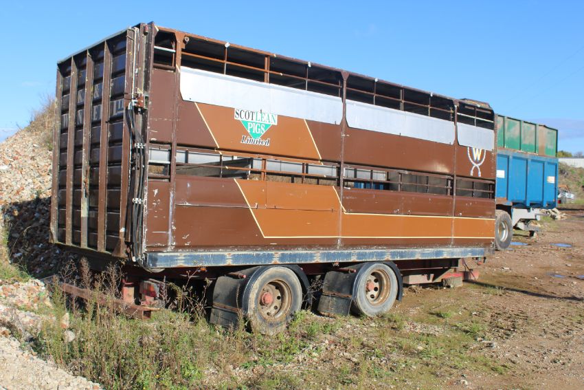Don-Bur 21ft twin axle ex-drag livestock trailer. 1998. With two deck fully lifting body, air suspension and air brakes. Set of mini super single rims and tyres (not fitted). V