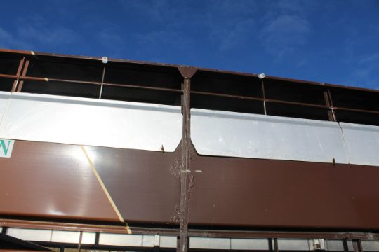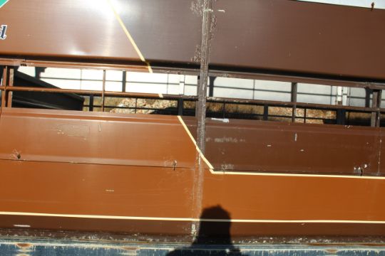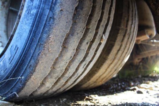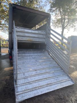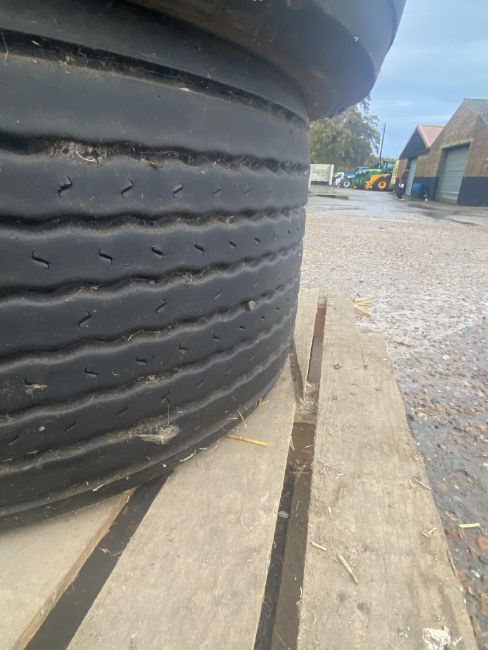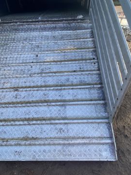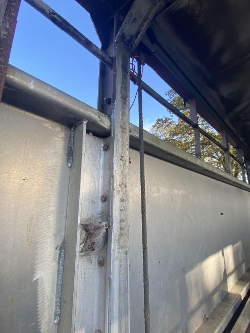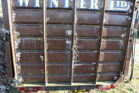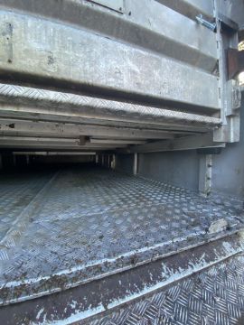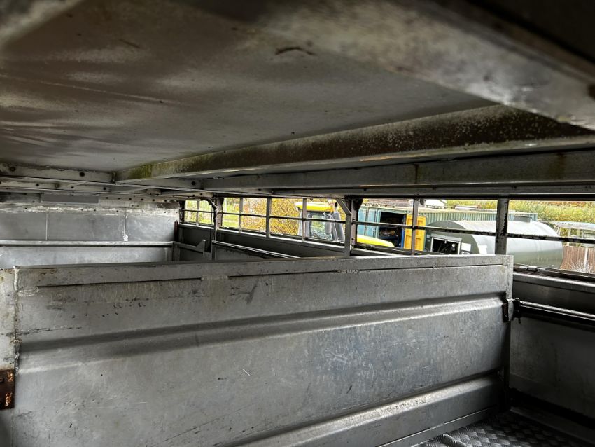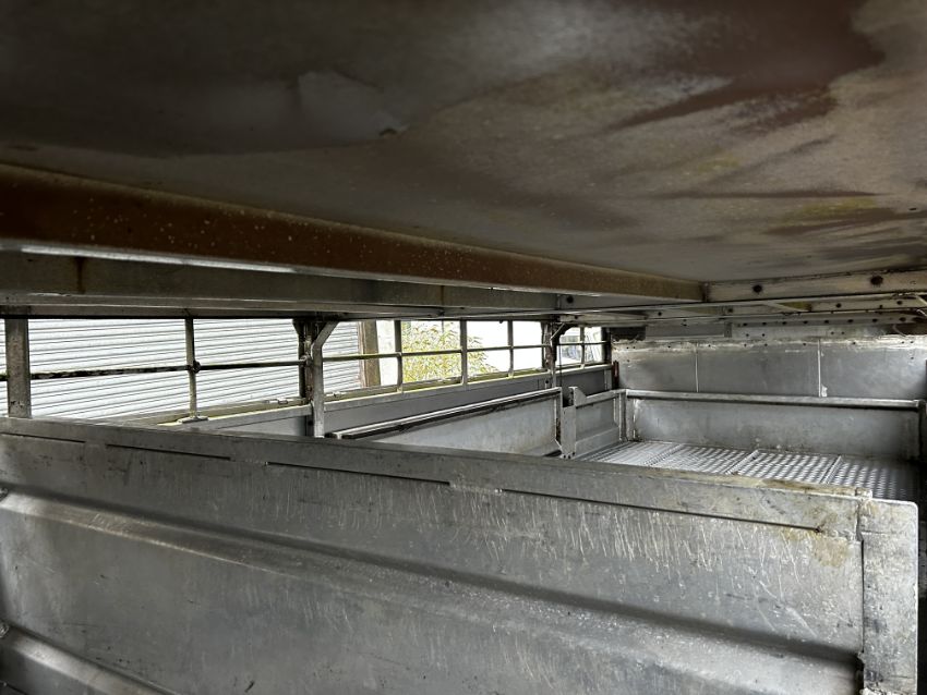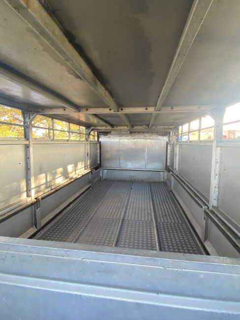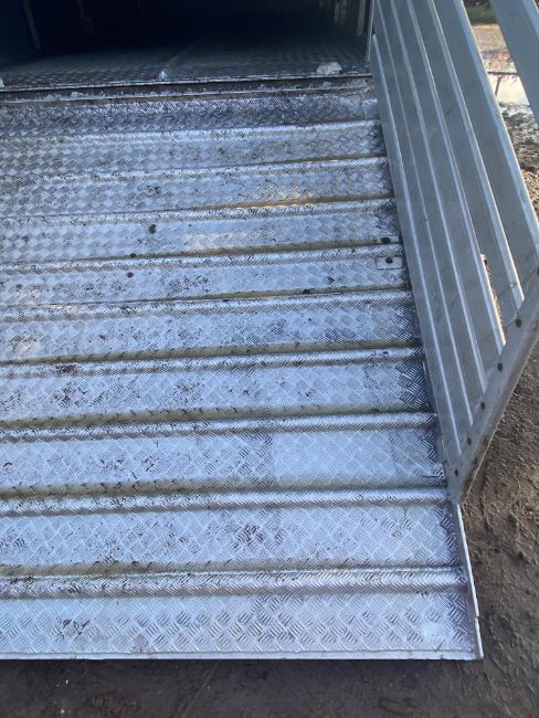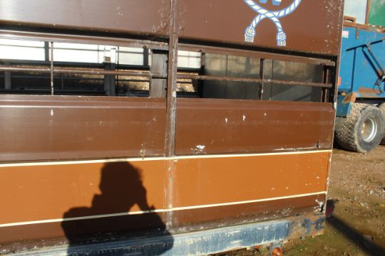 Don-Bur 21ft twin axle ex-drag livestock trailer. 1998. With two deck fully lifting body, air suspension and air brakes. Set of mini super single rims and tyres (not fitted). V