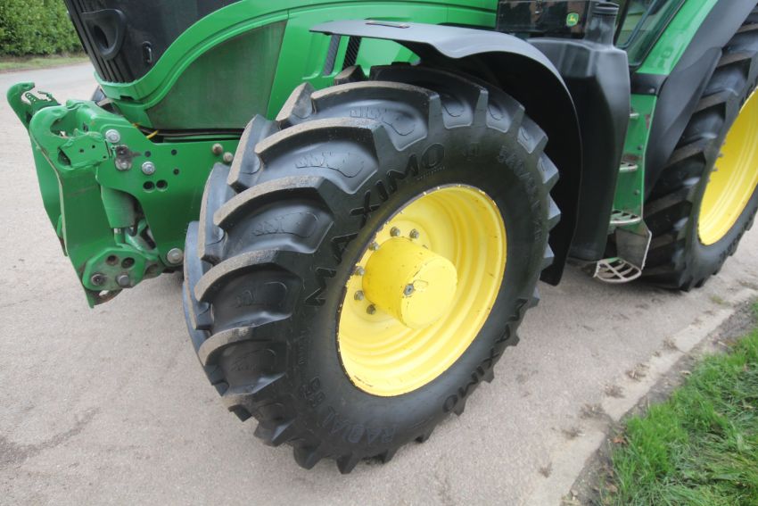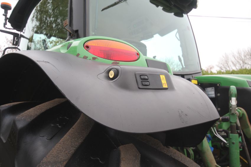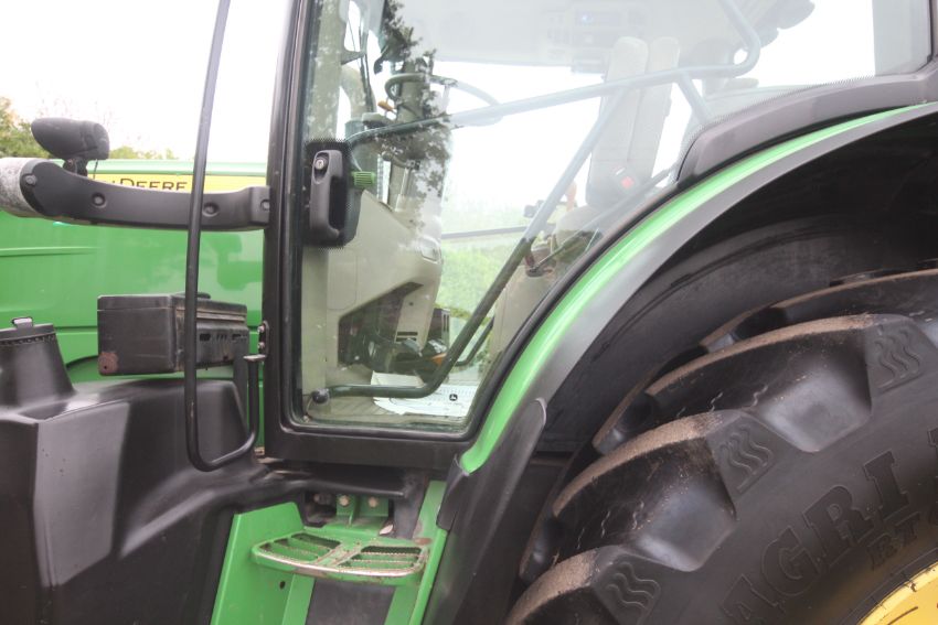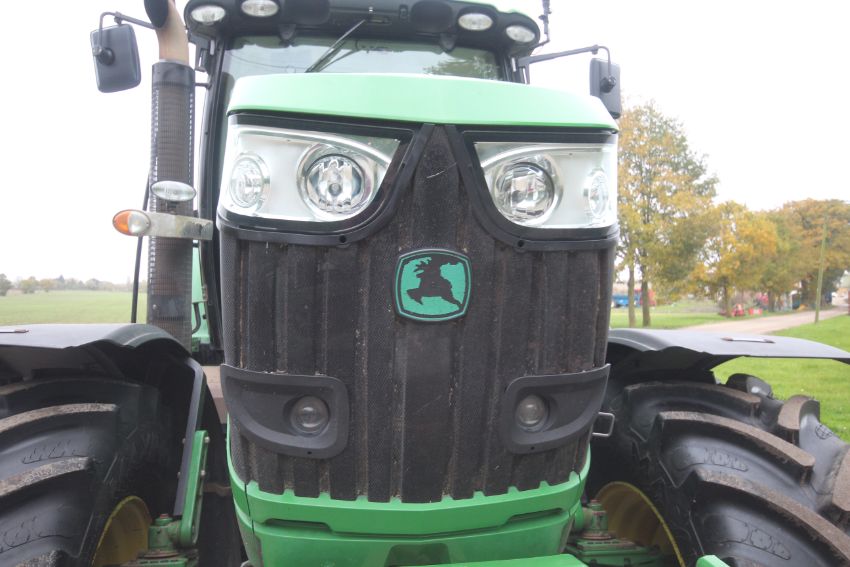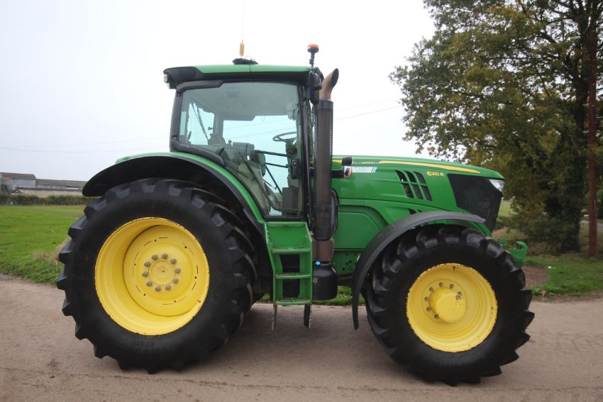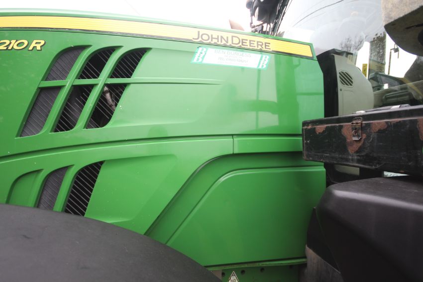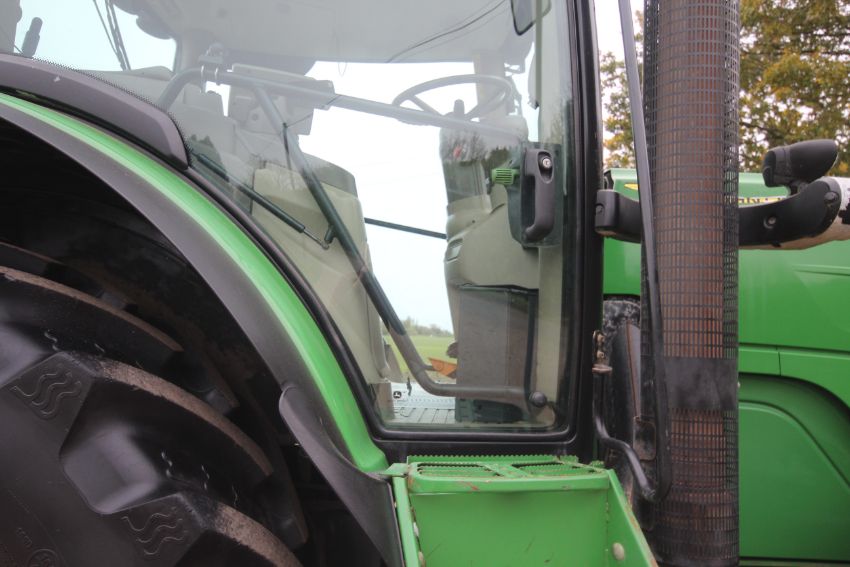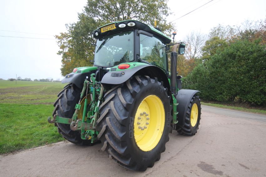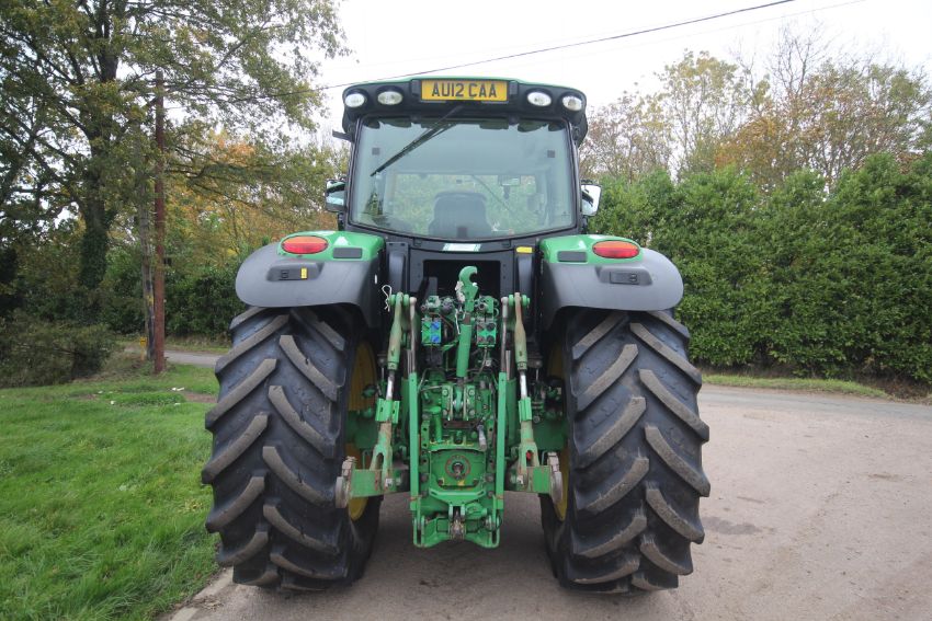John Deere 6210R 4WD tractor. Registration AU12 CAA. Date of first registration 12/04/2012. Serial number LO6210RECN710847. 10,000 hours. With front linkage, 50 KPH Auto Quad gearbox, air brakes, front suspension, and cab suspension. V