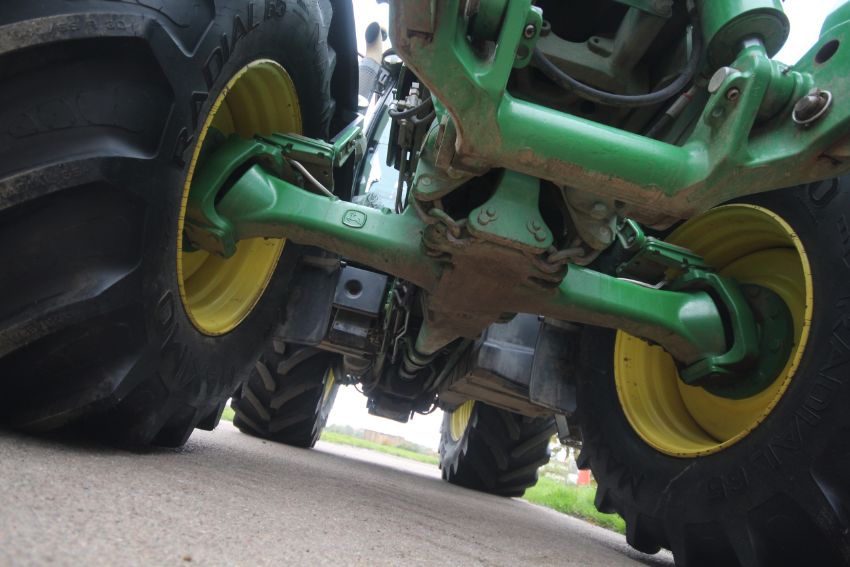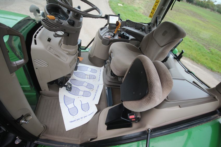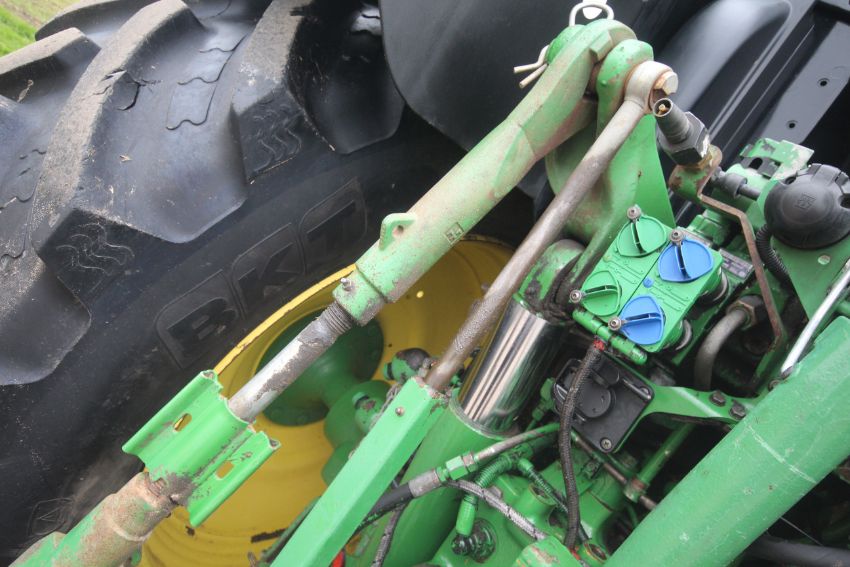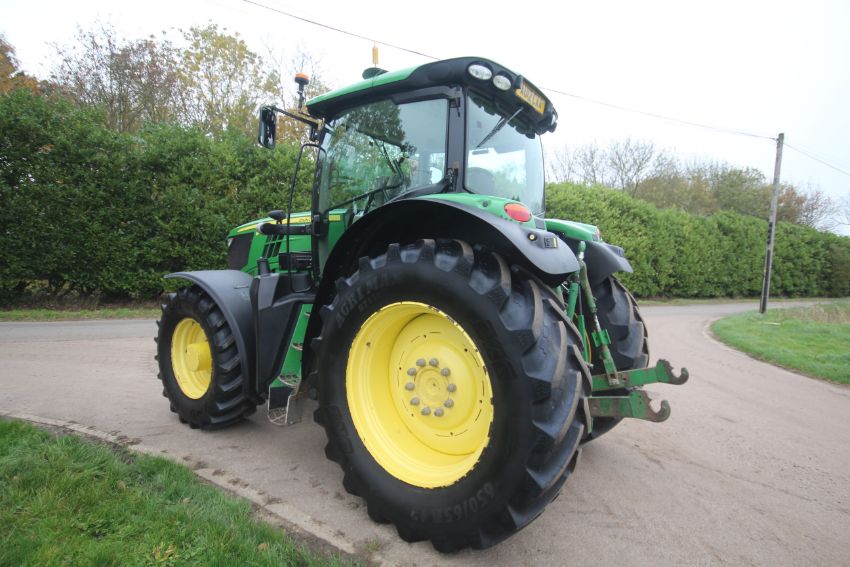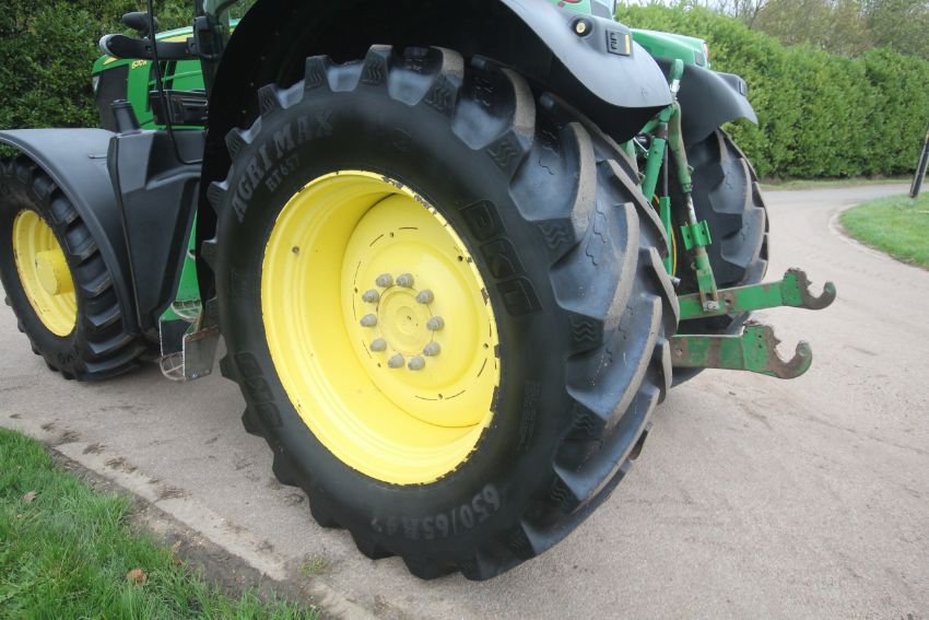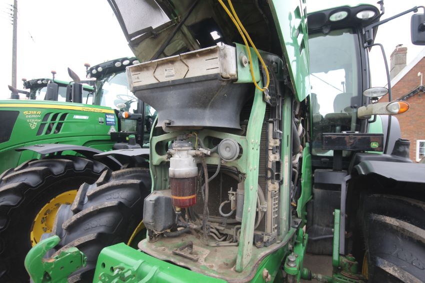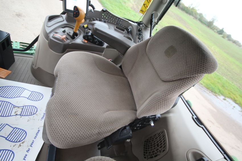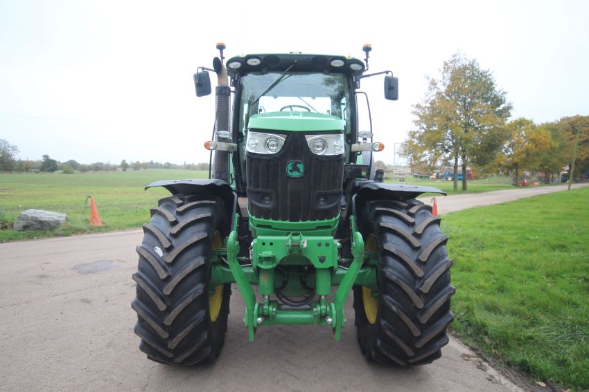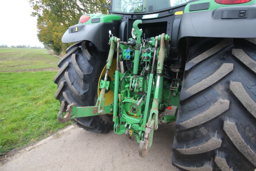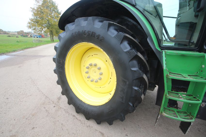 John Deere 6210R 4WD tractor. Registration AU12 CAA. Date of first registration 12/04/2012. Serial number LO6210RECN710847. 10,000 hours. With front linkage, 50 KPH Auto Quad gearbox, air brakes, front suspension, and cab suspension. V