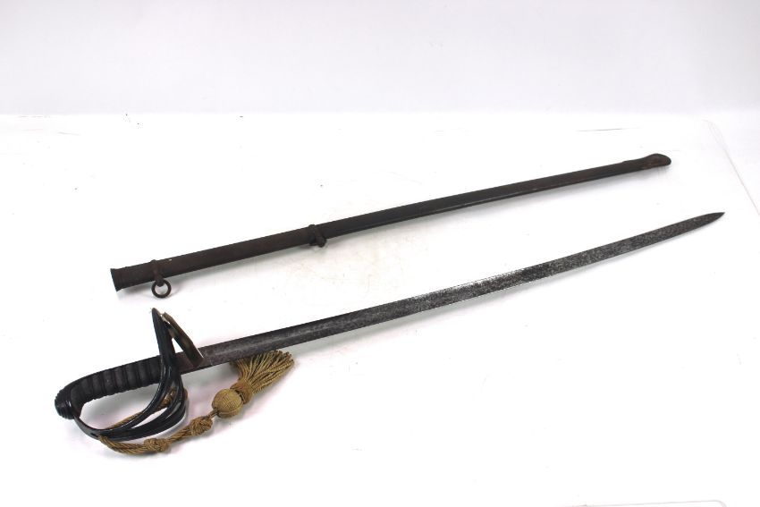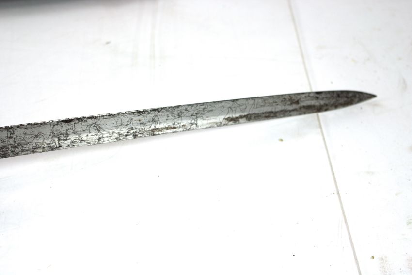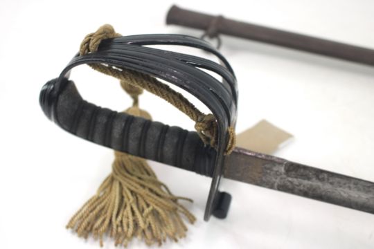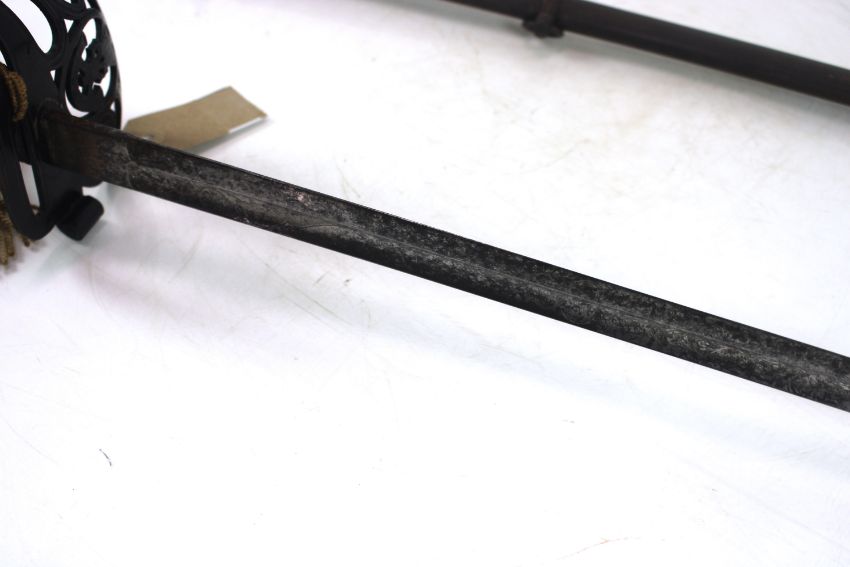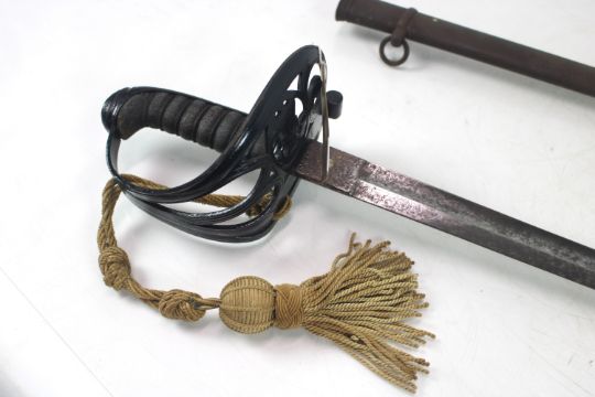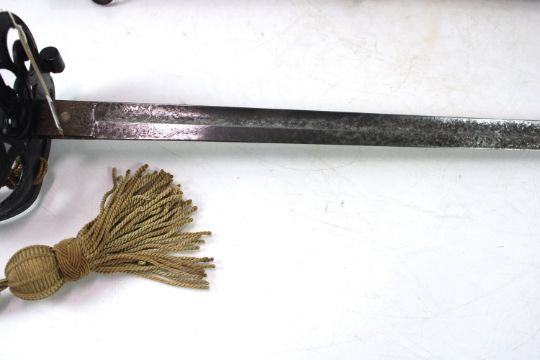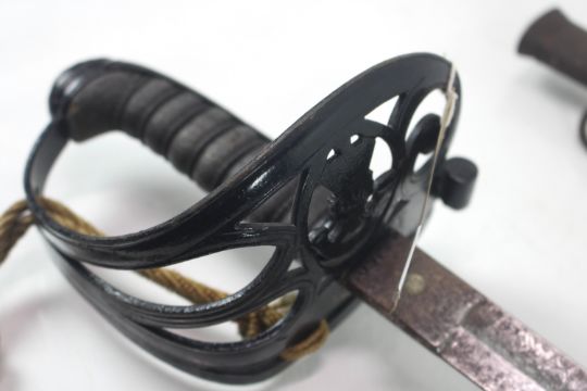 A Victorian 1827 Patt Rifle Officers Sword, blade marked to the 12th Kent Volunteers Rifles with scabbard (NB metal work to grip painted black)