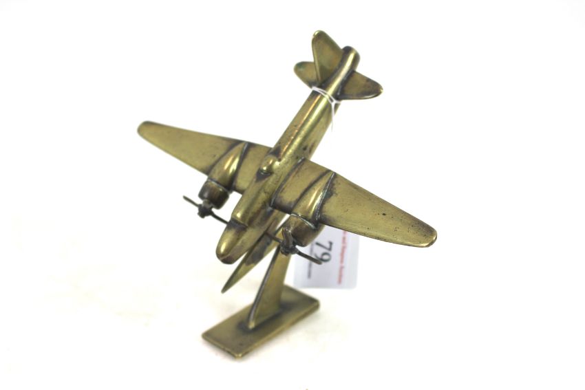 A small cast brass model of a Beau fighter, a good example on a "Lightning" stand