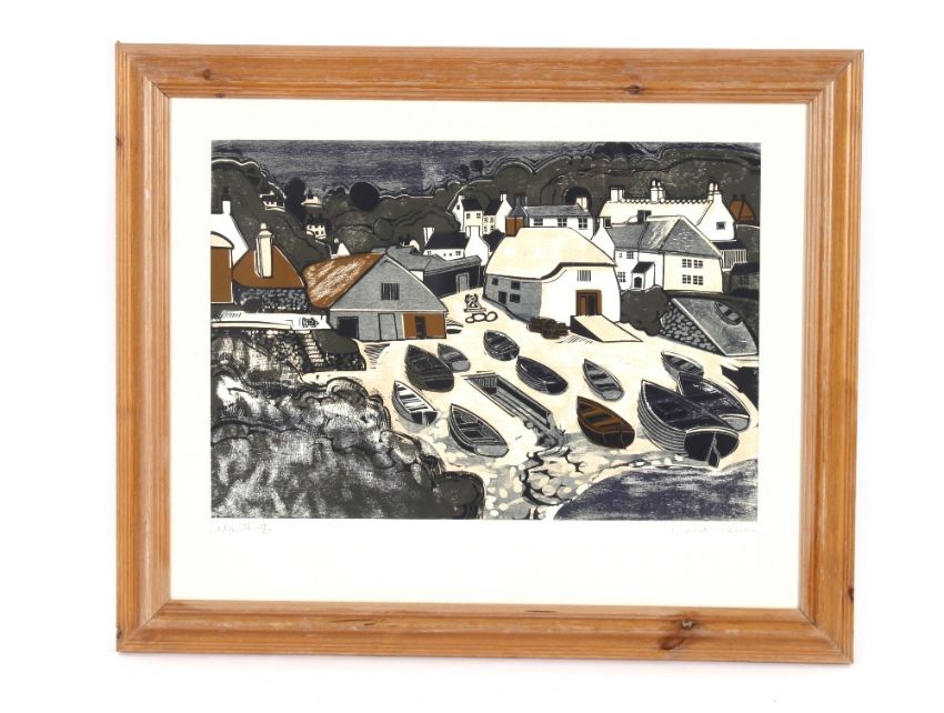 Graham Clarke, "Cadgwitha" limited edition lino cut, 14/50, 1966, plate 48cm x 65cm