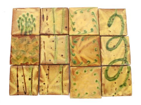 Twelve Clive Bowen glazed pottery tiles, 14cm