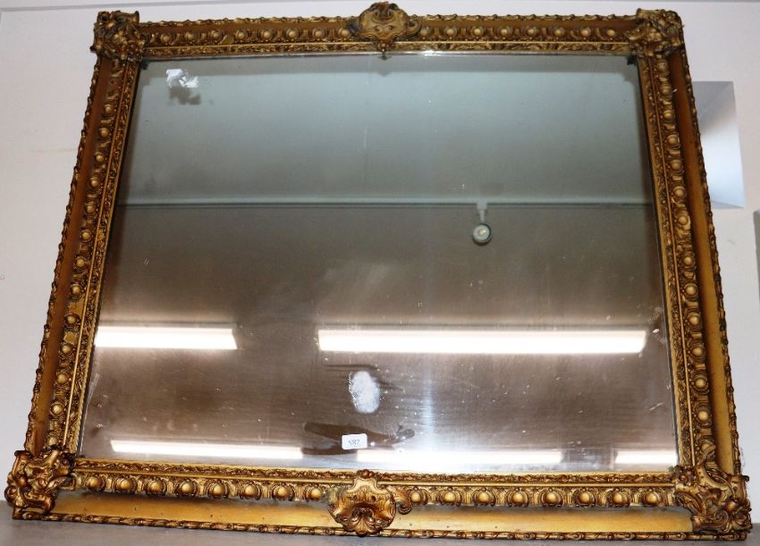 A large gilt framed over mantel mirror with foliate decoration, 100cm x 117cm in extremes