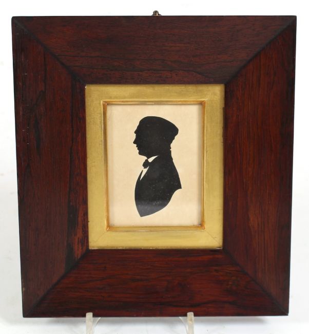A pair of Victorian silhouettes, in original rosewood frames, 10.5cm x 7.5cm, 25cm x 23cm overall