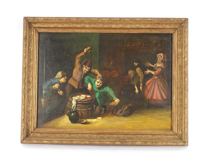 Dutch school, circa 1850 "The Cheater Caught", unsigned oil on canvas, in gilt frame, 34cm x 48cm