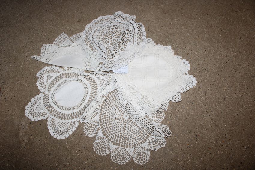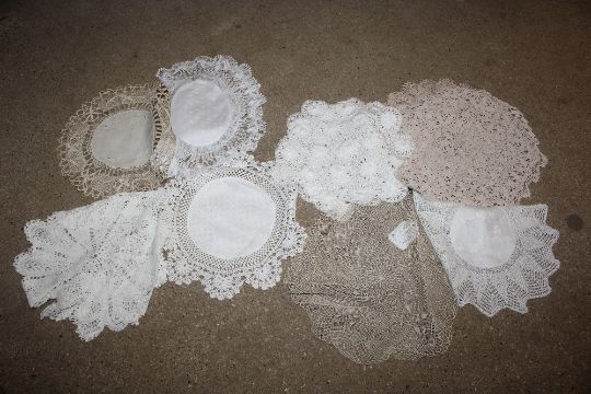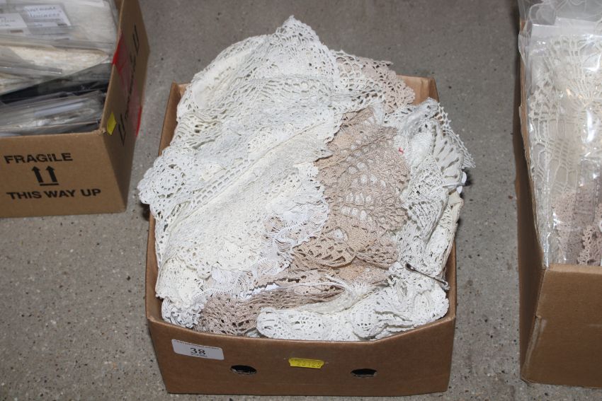A box containing crochet items, needle lace etc.