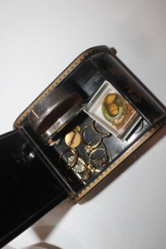A box containing coinage, jewellery, Casio wrist watch, artist box etc.
