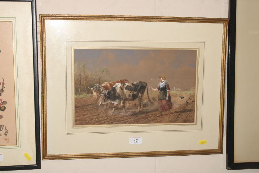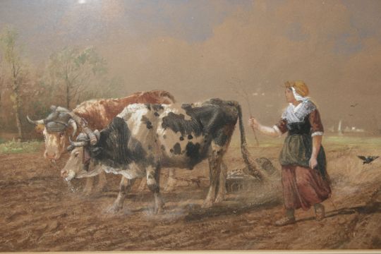 Richard Beavis, watercolour entitled "Oxen Ploughing"