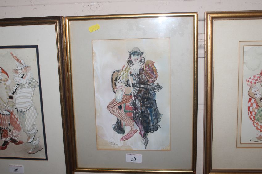 John Uht, watercolour, study of seated figure with guitar and parasol