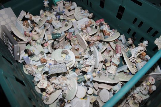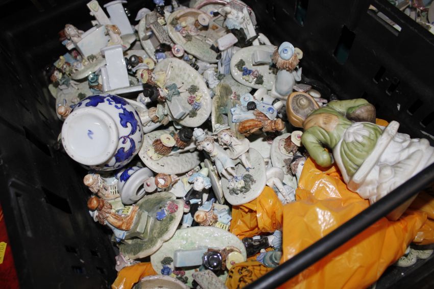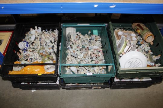 Six boxes containing a large quantity of various pottery figures, collectors plates etc.