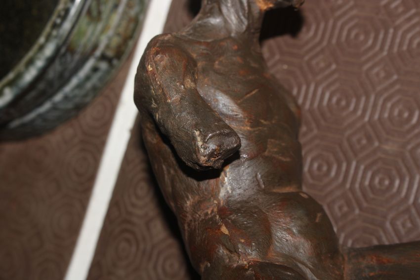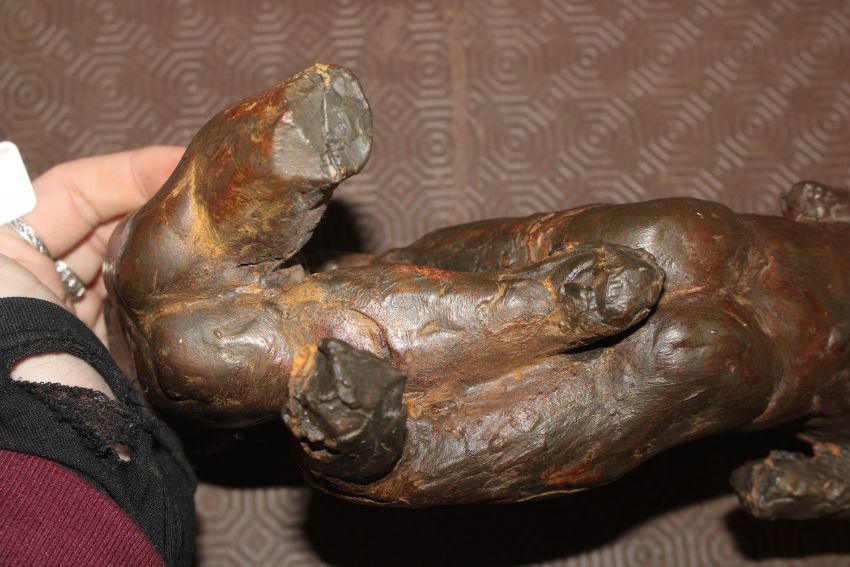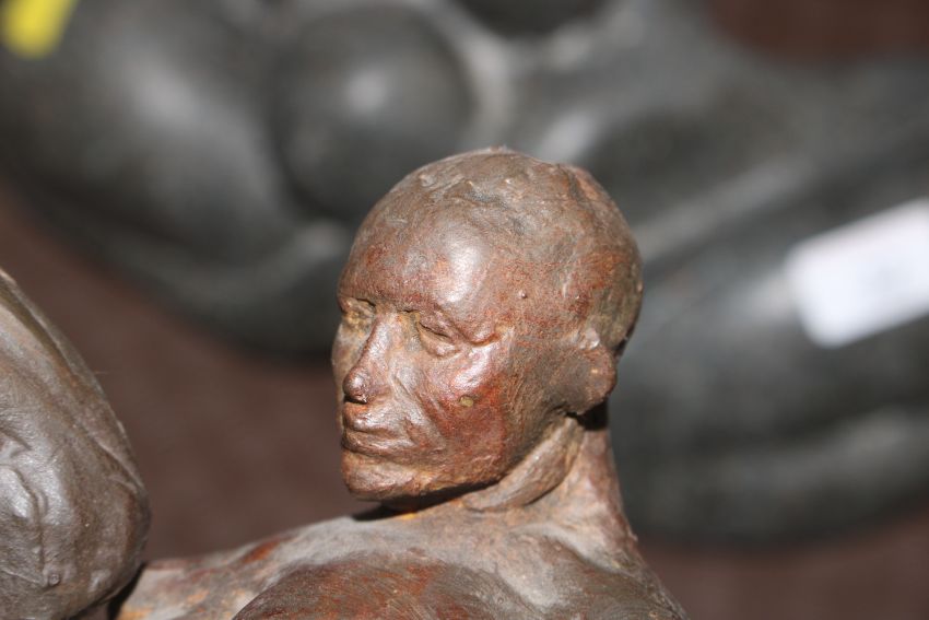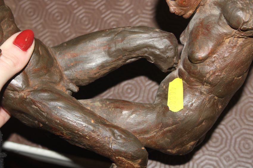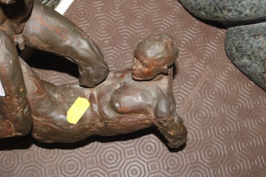 A sculpture in the form of nude male and female, 25cm high