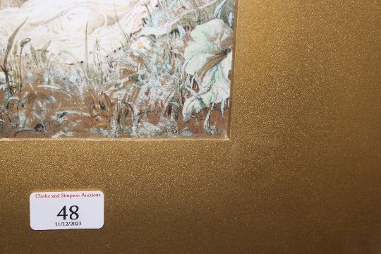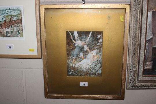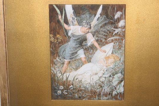 Valentine Walter Bromley, watercolour study "Oberon and Tatania", label verso, image size 21cm x 16cm