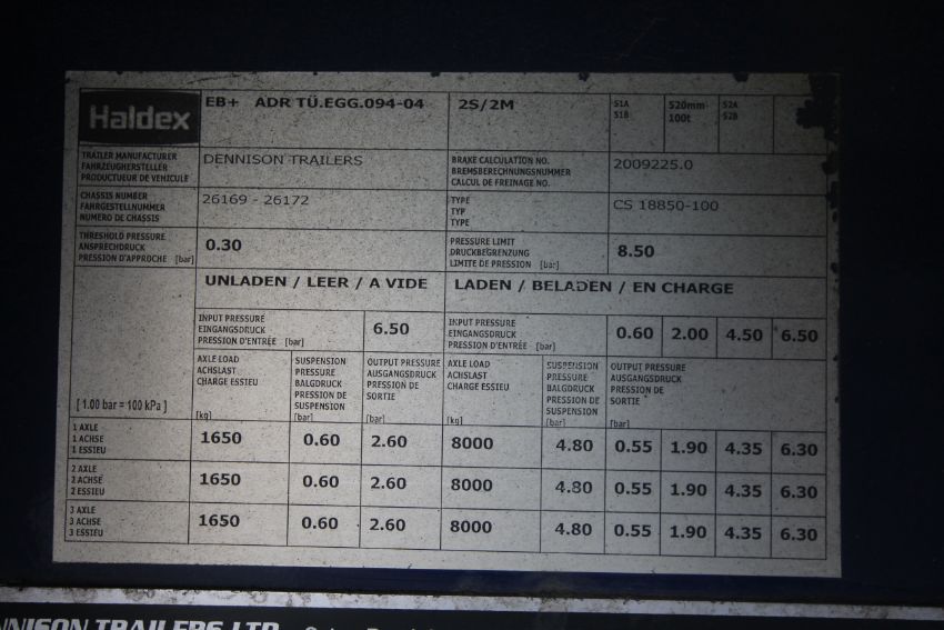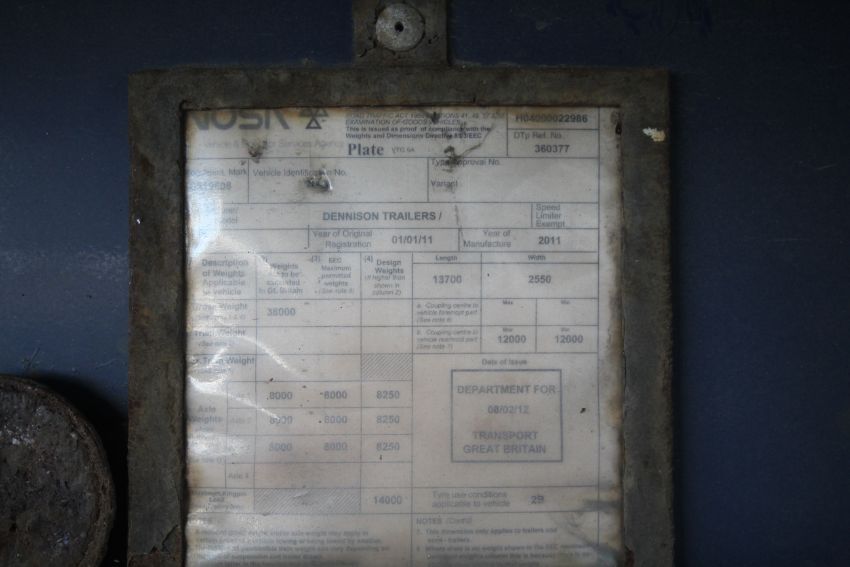 Dennison 38T 13.7m tri-axle curtain-side trailer. Registration C319608. 2011. MOT until 30/09/2024. 4.50m overall height. BWP axles, drum brakes and air suspension. 385/65R22.5 super single wheels and tyres with barn doors. V (TEL 3048) RENDLESHAM