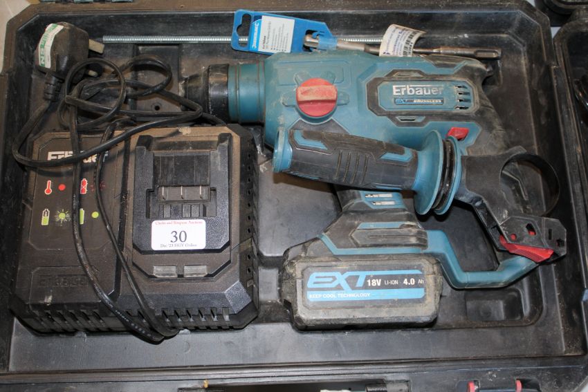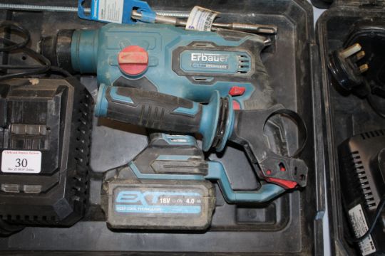 Erbauer 18v cordless hammer drill with battery and charger in a case. V CAMPSEA ASHE