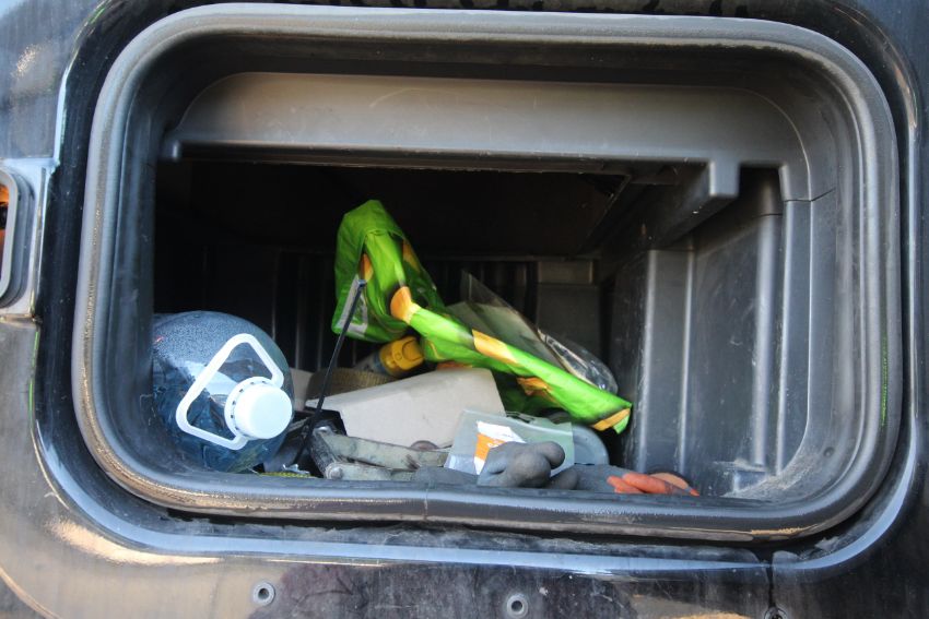 f. All loader arms are to be lowered and the contents of the buckets emptied.
