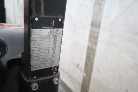 EP Equipment 1.5T electric pallet truck. 2021. With battery and charger. V RENDLESHAM