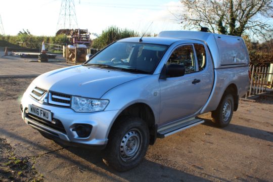 Mitsubishi L200 manual king-cab pick-up. Registration WN16 FMU. Date of first registration 14/03/2016, 99,448 miles. MOT until 29/05/24. With BF Goodrich offroad wheels and tyres and Truckman 3 door workshop canopy. V CAMPSEA ASHE