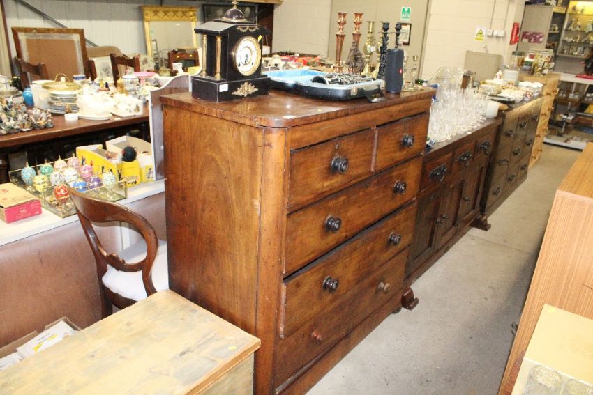 A Victorian mahogany chest fitted two short over three long drawers AF; and a Victorian upholstered dining chair