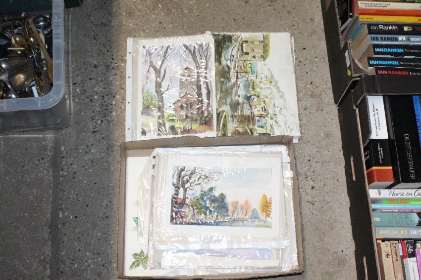 A box of various watercolours - some local scenes