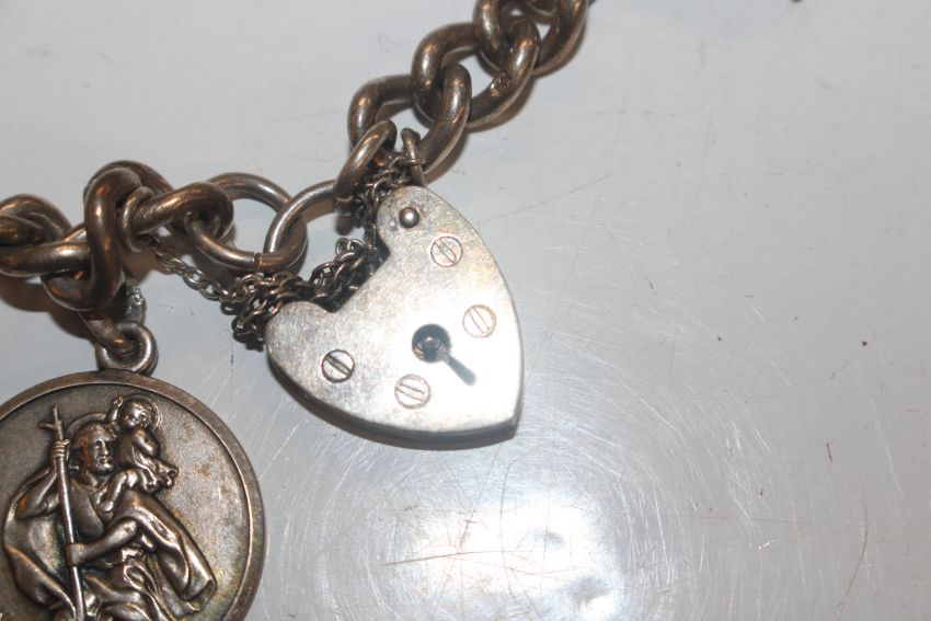 A silver charm bracelet; another charm bracelet and a silver necklace