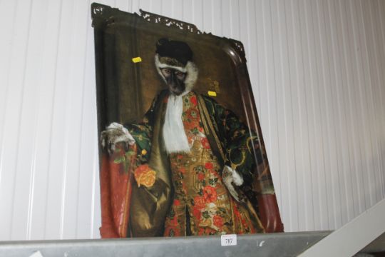 A lacquered panel with dressed monkey decoration in the 18th Century style