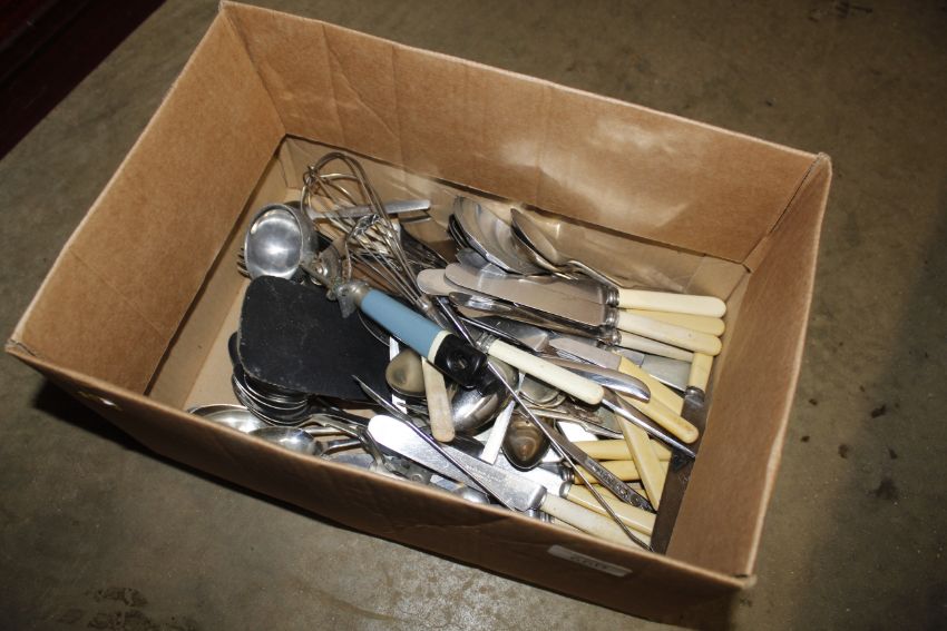 A box of various cutlery