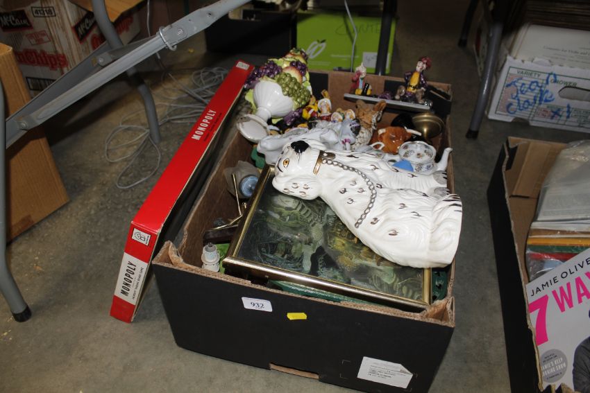 A Staffordshire spaniel ornament, various other china ornaments etc.
