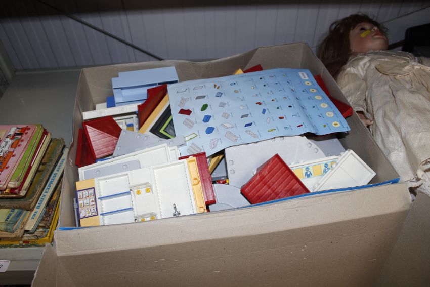 A box of assorted PlayMobil