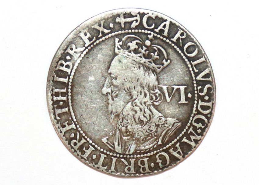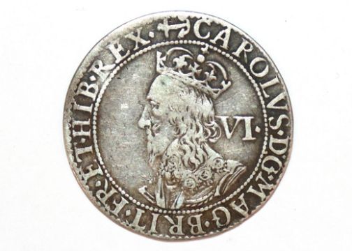 A Charles I sixpence, MM anchor and mullet