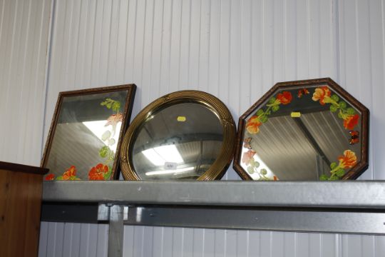 A circular convex mirror and two other mirrors
