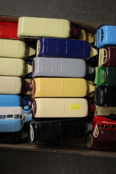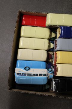 A collection of Corgi Bedford OB coaches