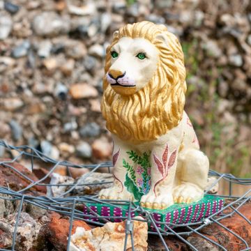 Aslan. Artist: Jeannie Gardner.Artist Info: Jeannie is a foodie, gardener and art lover. She studied art and art history at school (Long ago!). She is influenced by her lovely neighbour Bridget who generously lets her loose in her art studied and also by a wonderful, eccentric and fun art teacher, Miss Gordon. Sponsor: Cafeye.A fully licensed local café in Eye specialising in English, Italian and Mediterranean food, where you will always get a warm welcome.Sponsor website: https://gogiw.com/cafeyeSponsor Facebook: CafeyeSponsor Instagram: cafeye14 Approx animal weight (Kg): 7.8.Approx animal size (cm): 30 x 14 x 23.