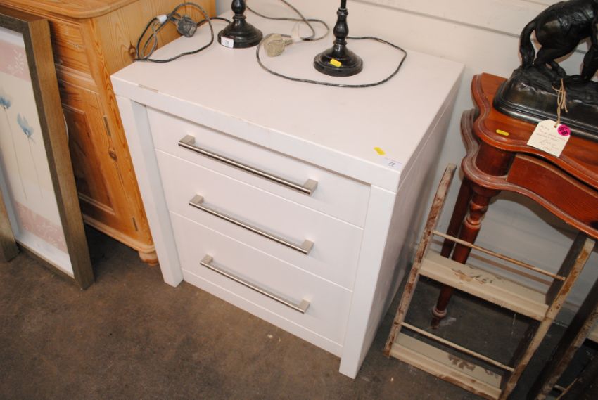 A modern white three drawer chest, 70cm wide x 50cm deep x 76cm high