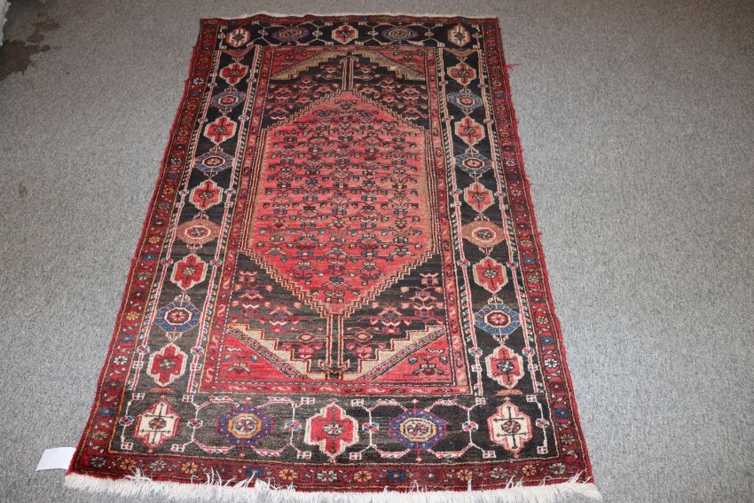An approx. 6'5" x 4'1" Hamadan red pattern rug AF