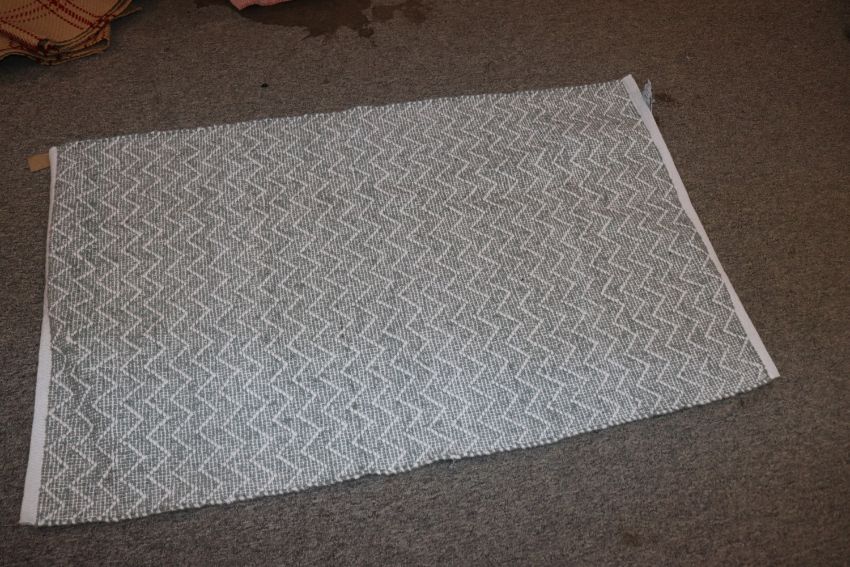 An approx. 4'11" x 3' Chenille dove grey Weaver Green rug