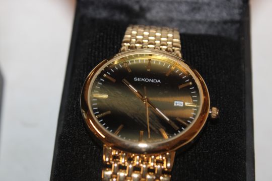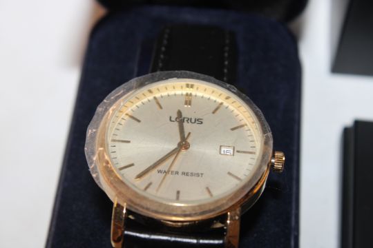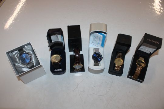A box containing Sekonda and Lorus wristwatches