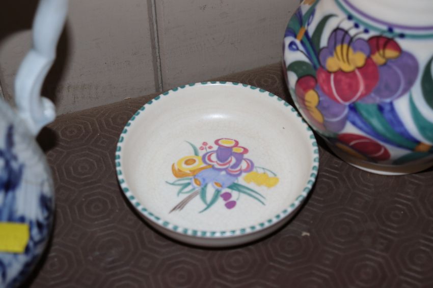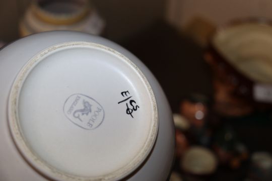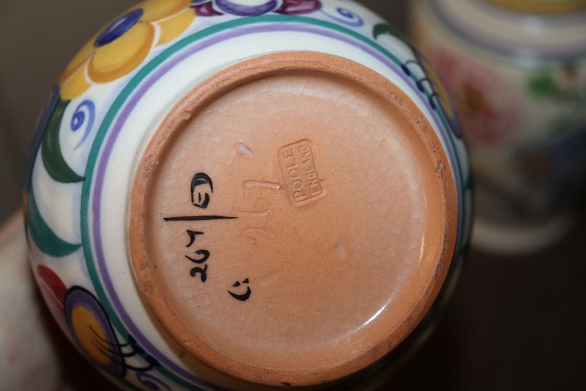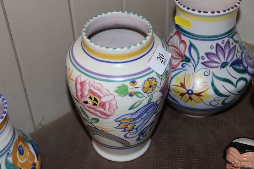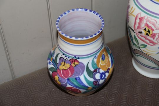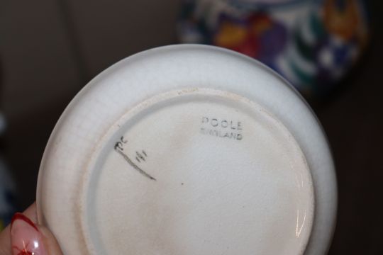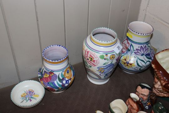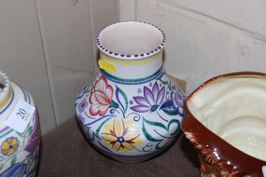 A Poole Pottery baluster vase; a smaller similar, another and Poole dish, AF