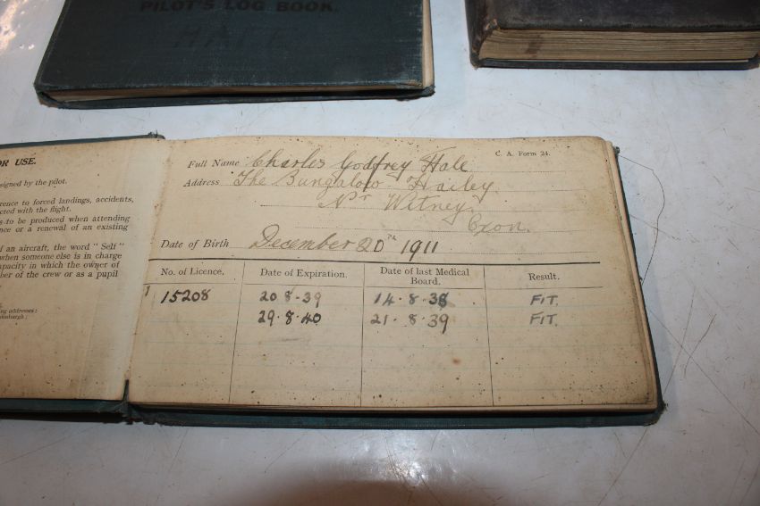 Aviation pilots flying log books, flying licence documents etc. to Charles Godfrey Hale, first flew 27th May 1929