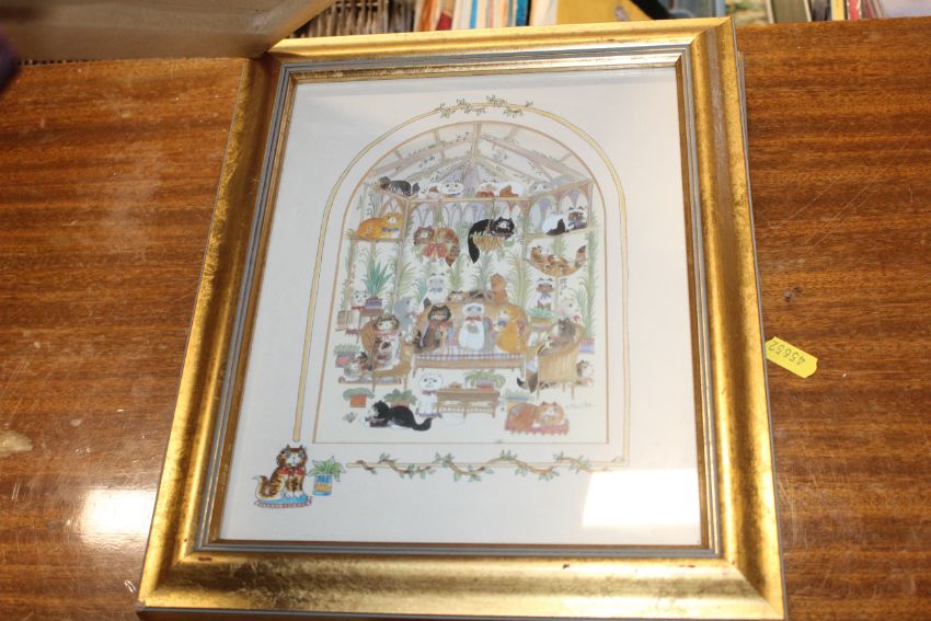 Three framed and glazed novelty cat prints