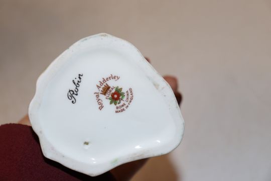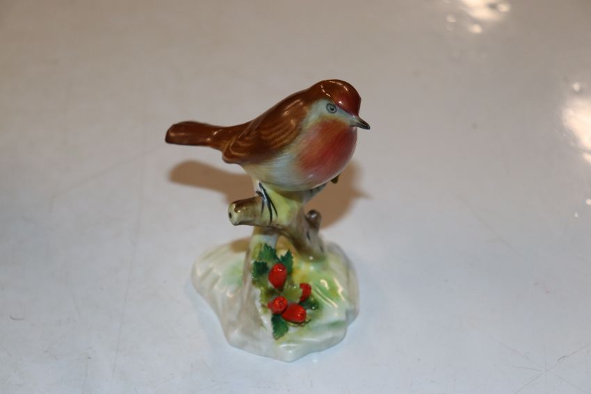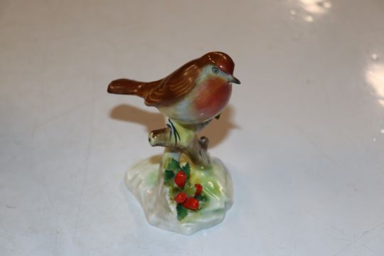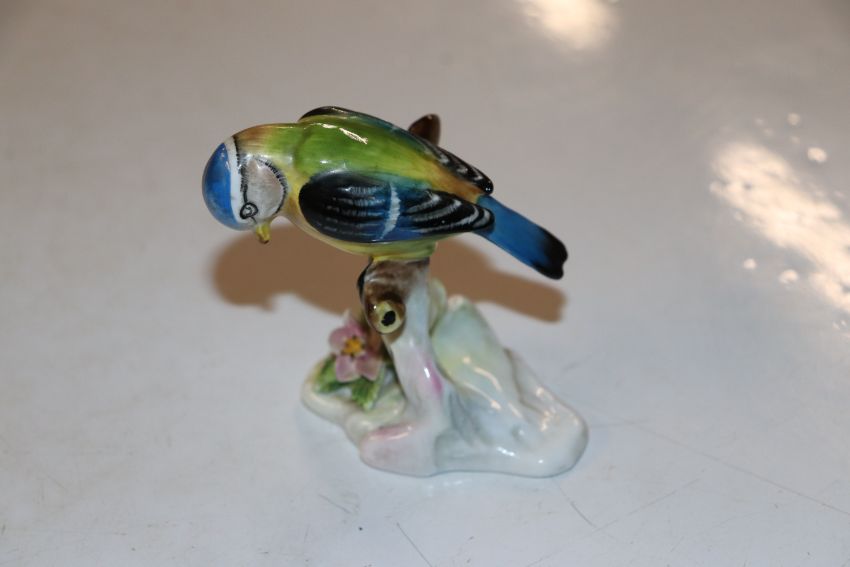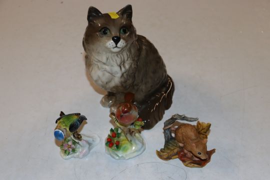 A Beswick cat; a Royal Doulton blue tit; a Royal Osbourne field mouse and a Royal Adderley robin